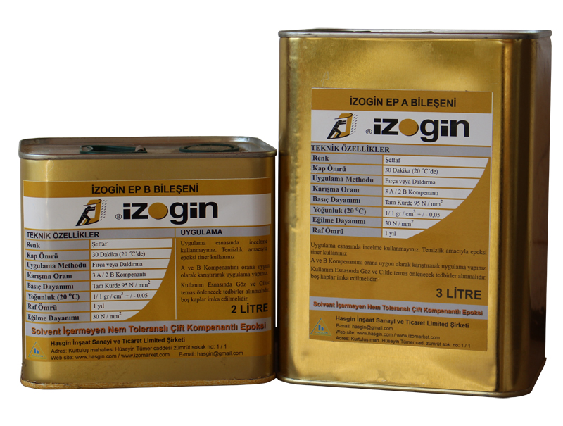 IZOGİN EP is prepared as a two-component, proportionally mixed set. IZOGİN EP A is measured as 3 parts, IZOGİN EP B as 2 parts, poured into a clean container, and mixed with a low-speed mixer for a few minutes. After mixing, the A+B mixture is ready for use. The pot life of the mixture at 25 °C is 30 minutes. This time decreases as ambient temperature rises and increases as temperature falls. Pot life should be considered when adjusting the mixture quantity.
